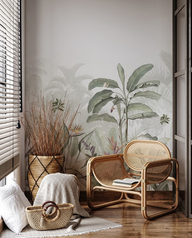 Motivul plantelor exotice înviorează interiorul și conferă spațiului cotidian un farmec unic – natural, elegant și atemporal.