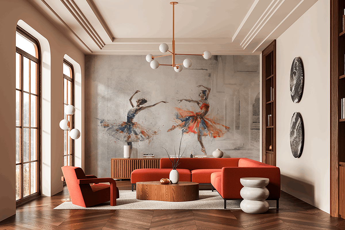 Aceasta este o alegere excelentă pentru persoanele care prețuiesc arta, mișcarea și estetica sofisticată, integrându-se perfect atât în aranjamente moderne, cât și în cele clasice. Un fototapet va evidenția unicitatea unui living, studio sau spațiu artistic, introducând armonie și luminozitate.
