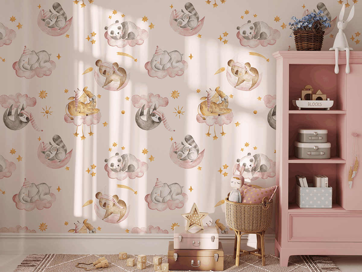 Fototapetul „Vise cu animale” – lumea magică a viselor copiilor, personaje fermecătoare și o atmosferă blândă, liniștitoare