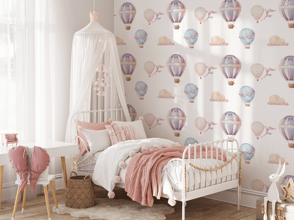 Fototapetul „Pastel Sky Dreams” – o lume de basm a imaginației copiilor, luminozitatea culorilor pastelate și o decorare fermecătoare a camerei
