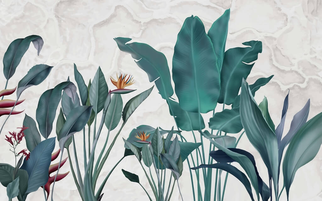 Această pictură murală de perete unică înfățișează flori frumoase de strelitzia, care vor adăuga un farmec proaspăt și subtil oricărui interior. Florile Strelitzia se caracterizează prin culori intense și formă neobișnuită, ceea ce le face motivul perfect pentru decorarea pereților.