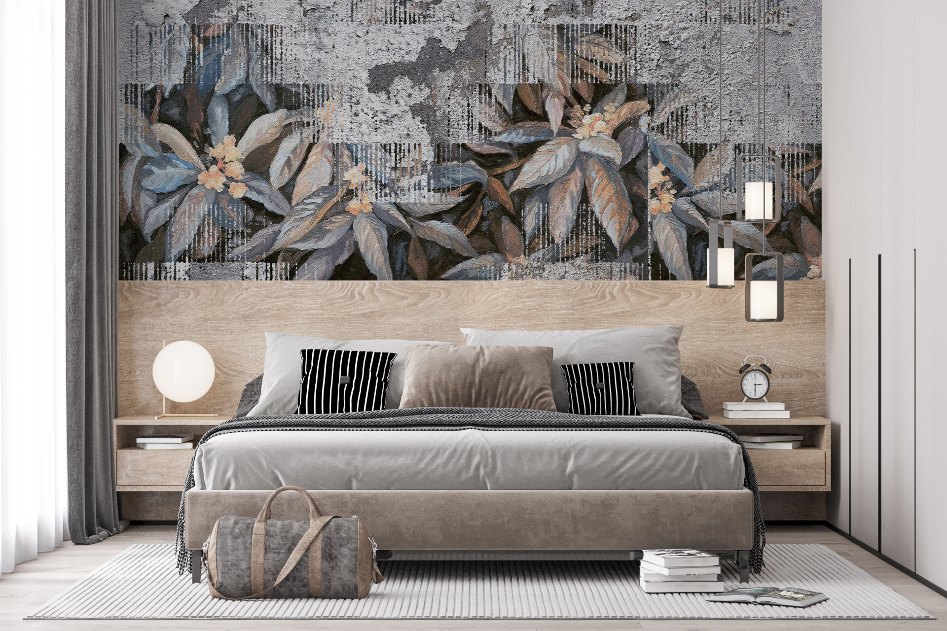 Transportă-te în lumea magică a naturii cu această pictură murală fermecătoare de flori neclare. Acest design extrem de delicat și subtil va conferi interiorului dvs. o notă specială. Florile de pe această pictură murală de perete arată ca și cum ar fi fost obliterate cu grijă, adăugând o notă de nostalgie și mister în cameră.