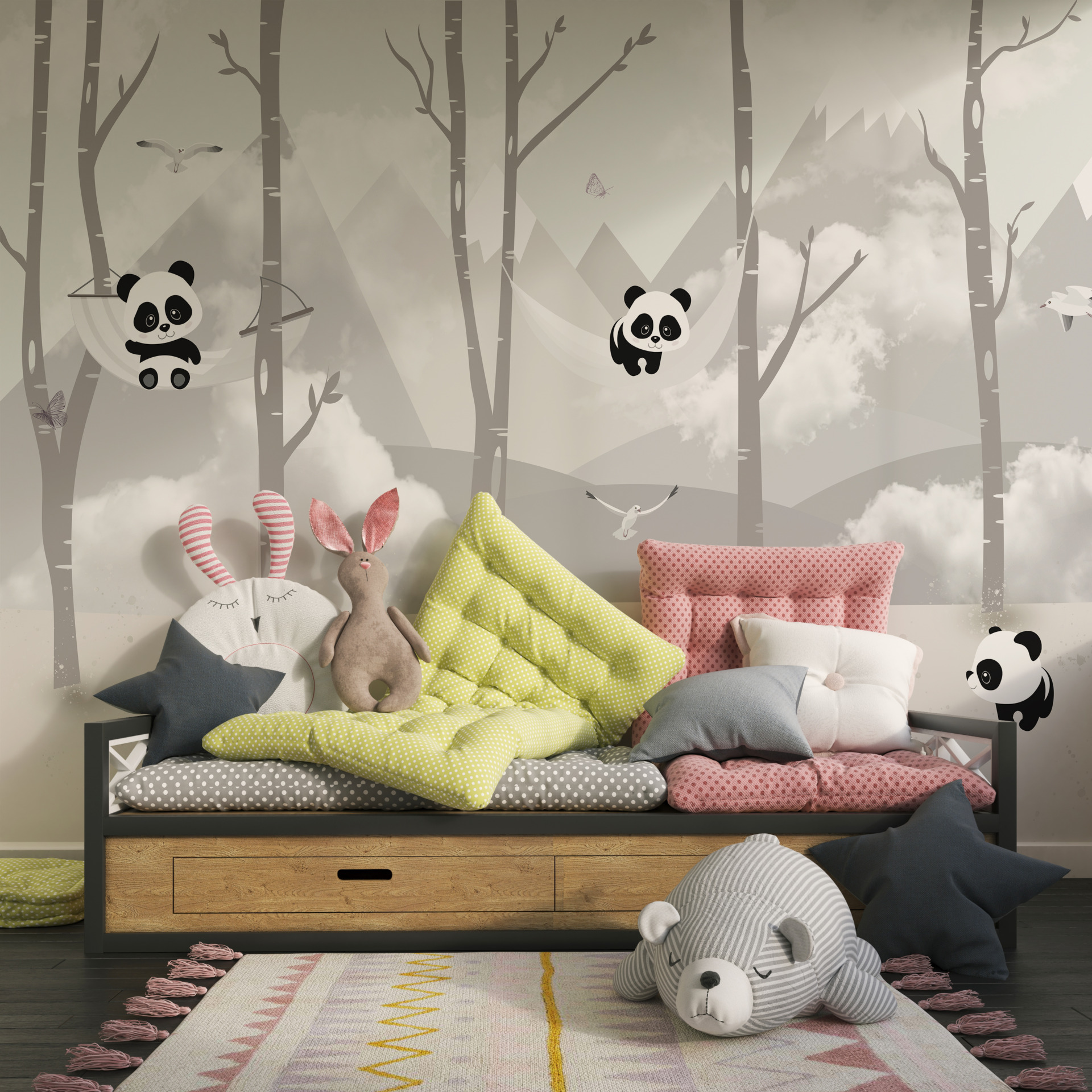 Transformați-vă camera într-o oază confortabilă de pace și armonie, adăugând o notă de natură și farmec. Pictura murală „Teddy Bears in the Silver Mountains” va face ca fiecare intrare în cameră să fie ca o introducere într-o lume magică a basmelor.