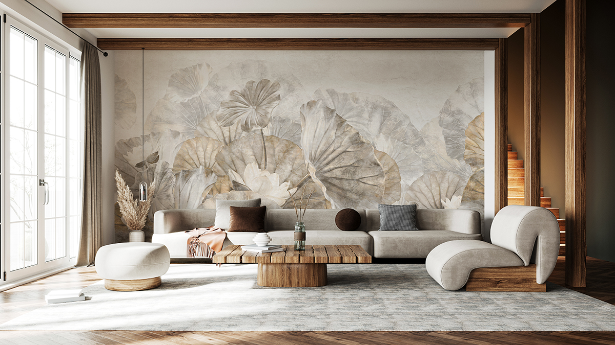 Wallpaper Bej Lotus frunze